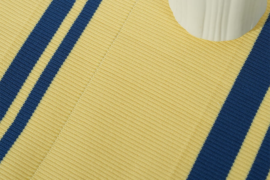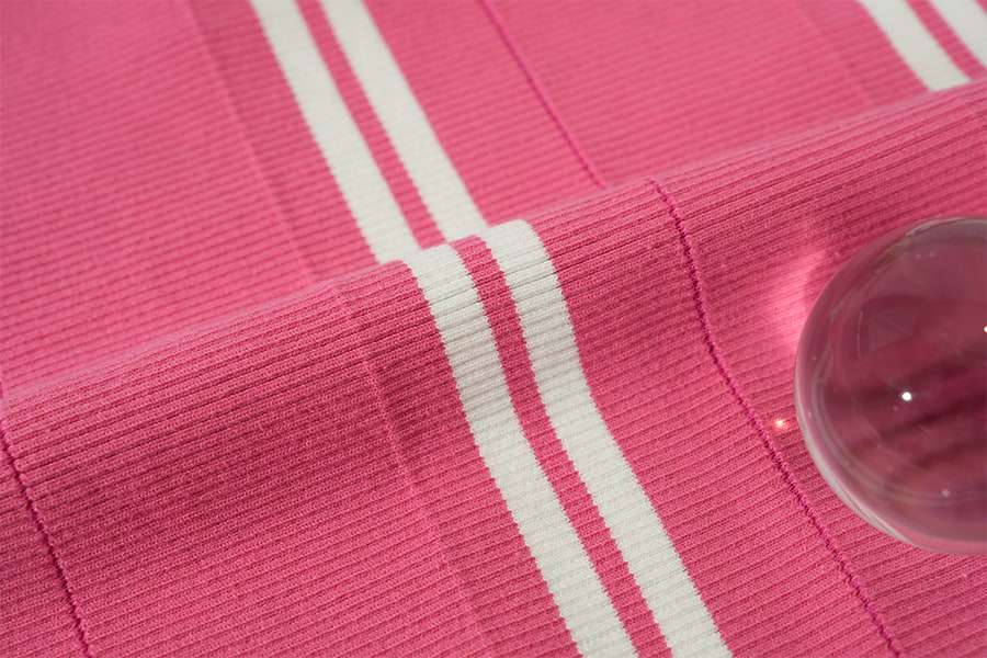 I motsats till den tidlösa tjusningen av ribbtyg i bomull representerar ribbstickad polyester ett modernt underverk inom textilteknik, som kännetecknas av sin spänst, prestanda och mångsidighet. Detta stickade tyg består av syntetiska polyesterfibrer och har en distinkt ribbad struktur som påminner om dess bomullsmotsvarighet, om än med förbättrad styrka och hållbarhet. Ribbstickad polyester symboliserar äktenskapet mellan stil och funktionalitet, och tillgodoser kraven från modern livsstil med oöverträffad effektivitet.